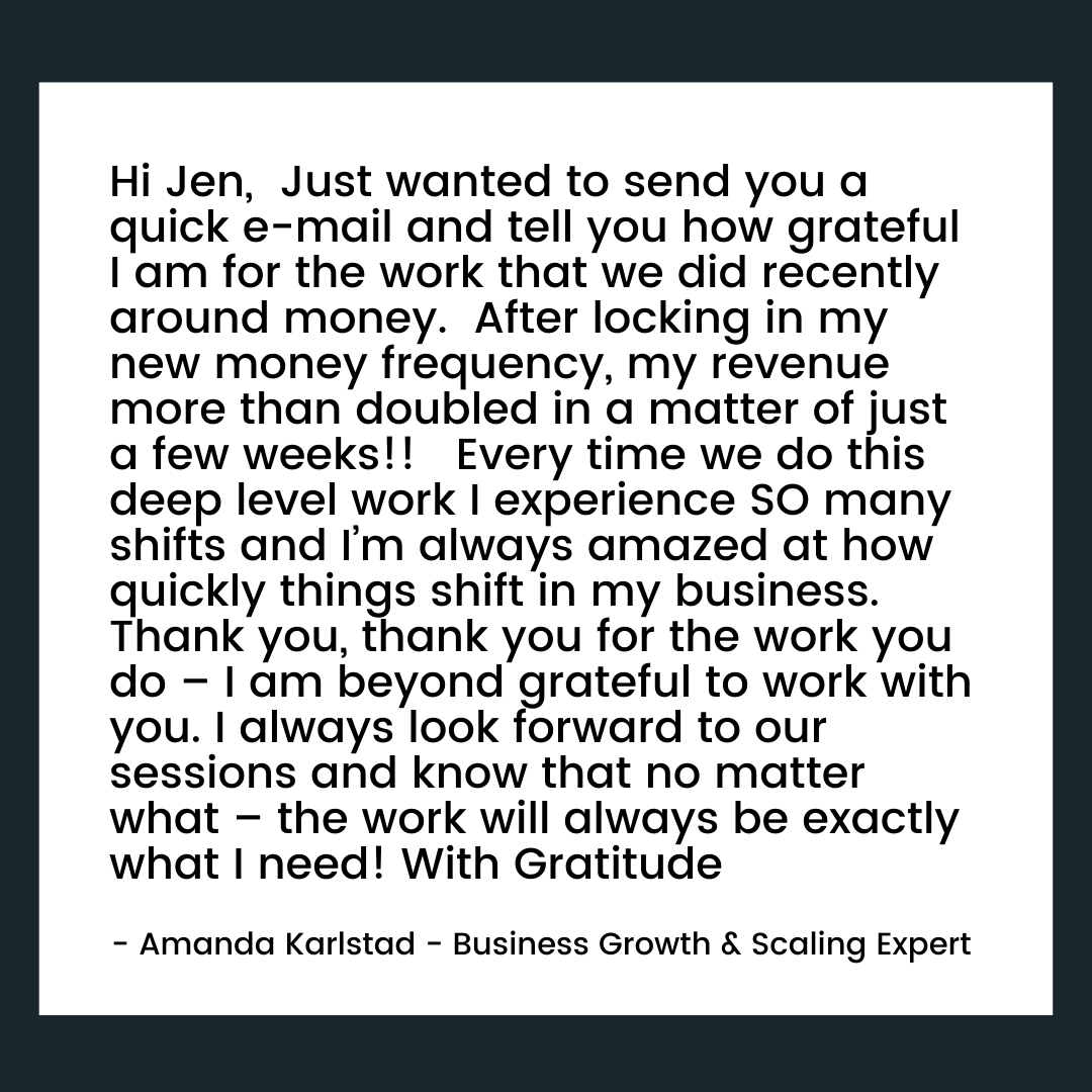 With the magic of the work we do will help you create more money and impact in a way that feels in Alignment with you .. beyond where you have been before …