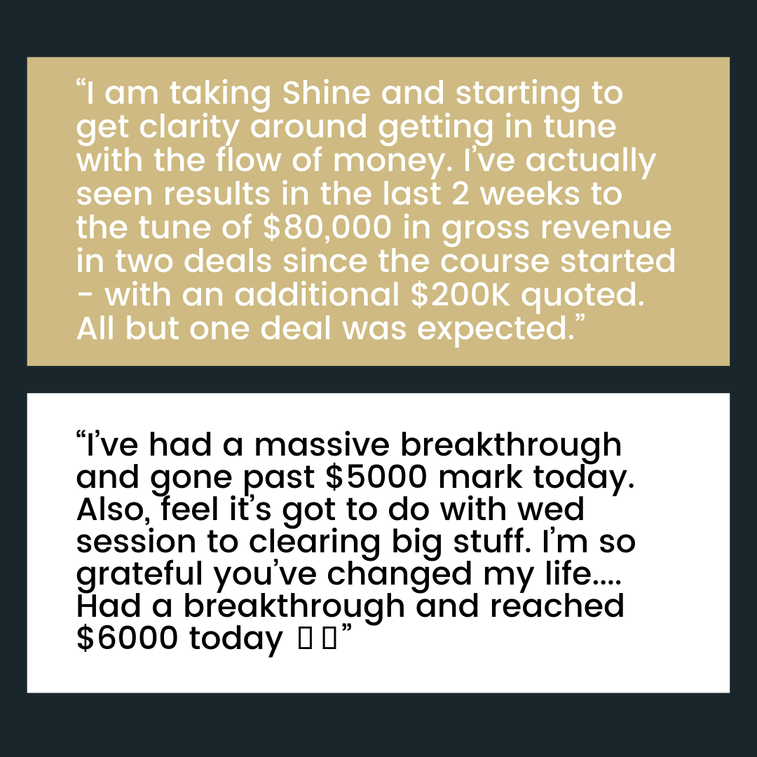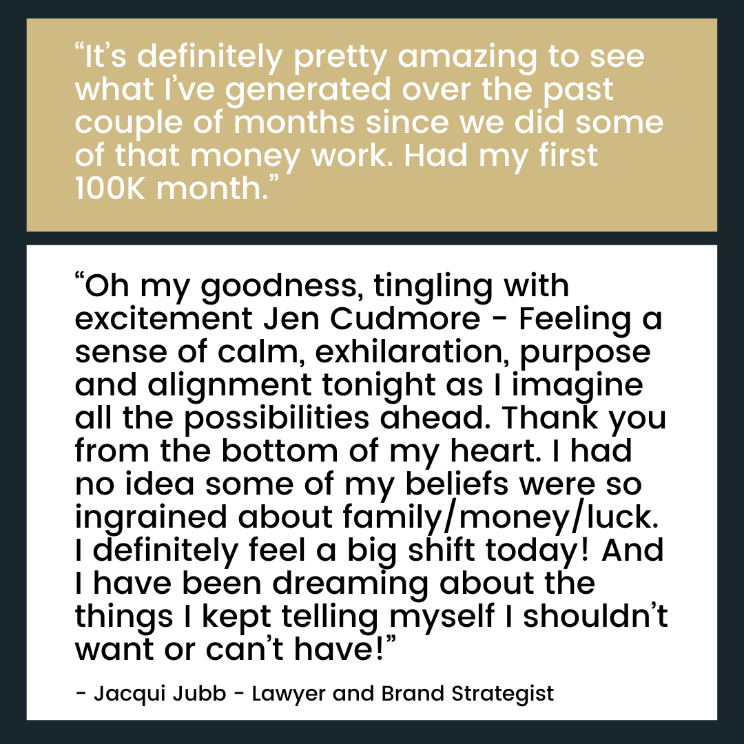 Most of my clients find it hard to even put into words, the transformations and shifts they have in their money and their success, going through this process with me.